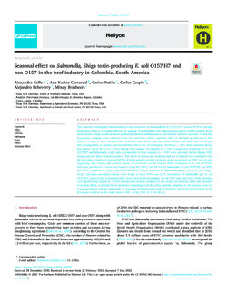 Seasonal effect on Salmonella, Shiga toxin-producing E. coli O157:H7 and non-O157 in the beef industry in Colombia,