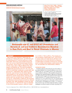 Salmonella and E. coli O157:H7 Prevalence and Generic E. coli and Coliform Quantitative Baseline in Raw Pork and Beef in Retail Channels in Mexico.