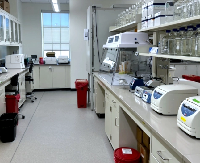The laboratory includes interconnected rooms and dedicated areas for sample processing, microbial culture, molecular analysis, and long-term storage. Our infrastructure also supports safe and responsible research through biological safety cabinets, sterilization and waste management systems, and cold-storage capacity.